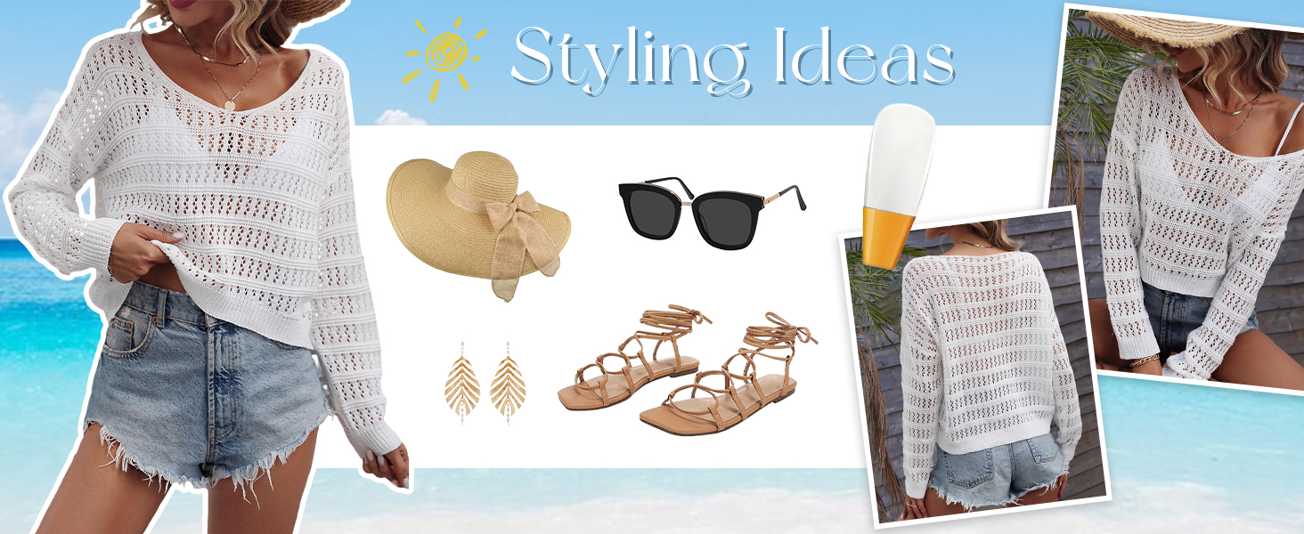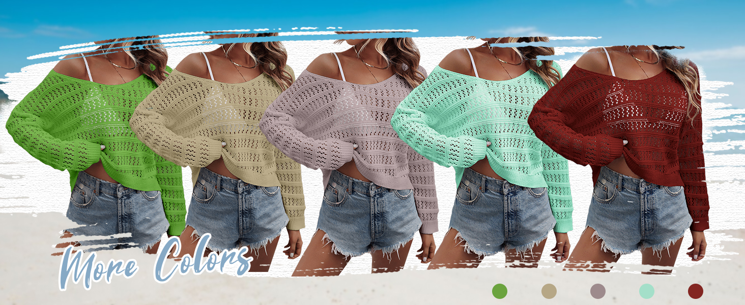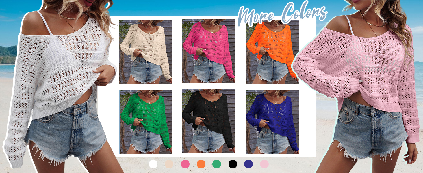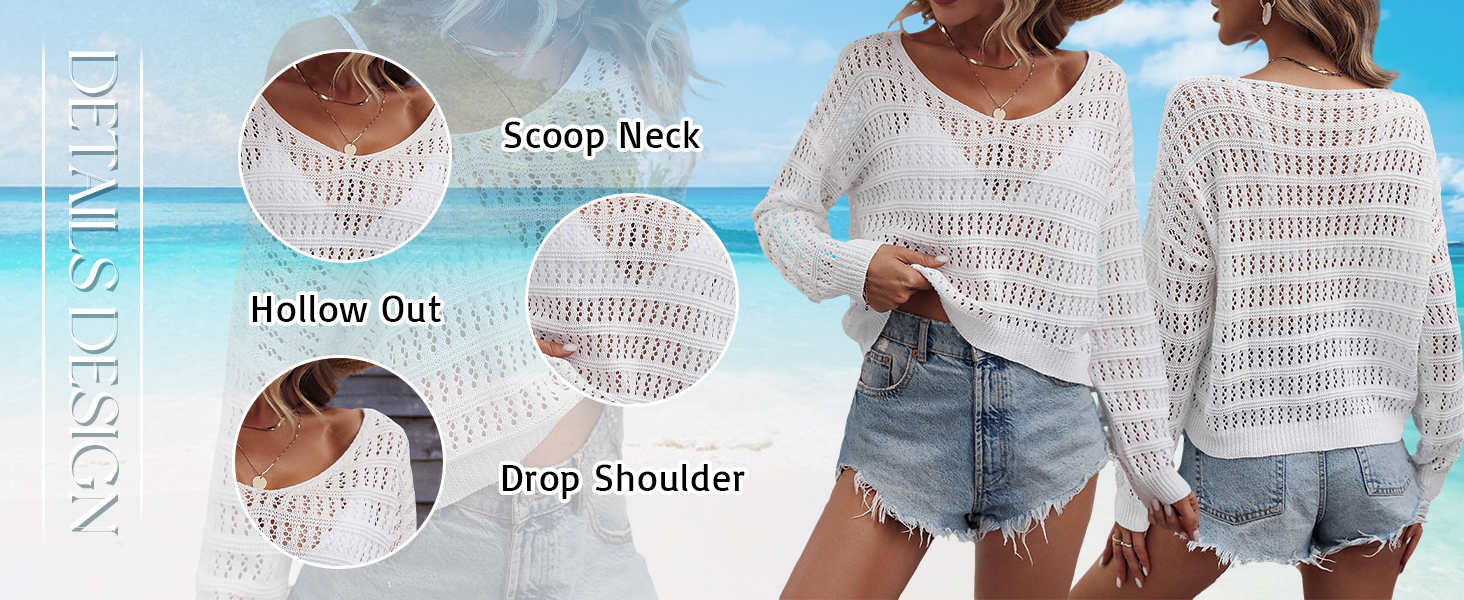 - Features: scoop neck, drop shoulder, long sleeve, hollow out, crochet sweater tops
